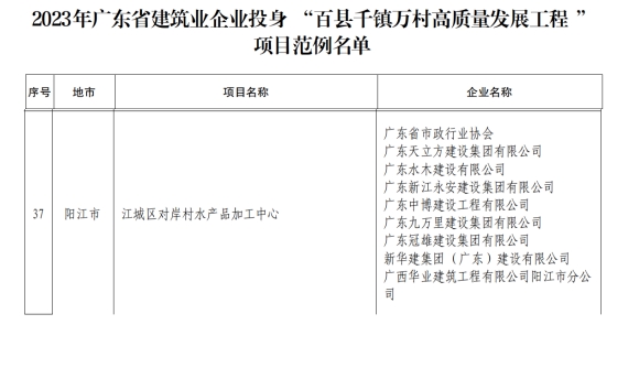 | 廣東省住房和城鄉(xiāng)建設(shè)廳關(guān)于公布2023年廣東省建筑業(yè)企業(yè)投身“百縣千鎮(zhèn)萬(wàn)村高質(zhì)量發(fā)展工程”項(xiàng)目范例名單的公告 | |